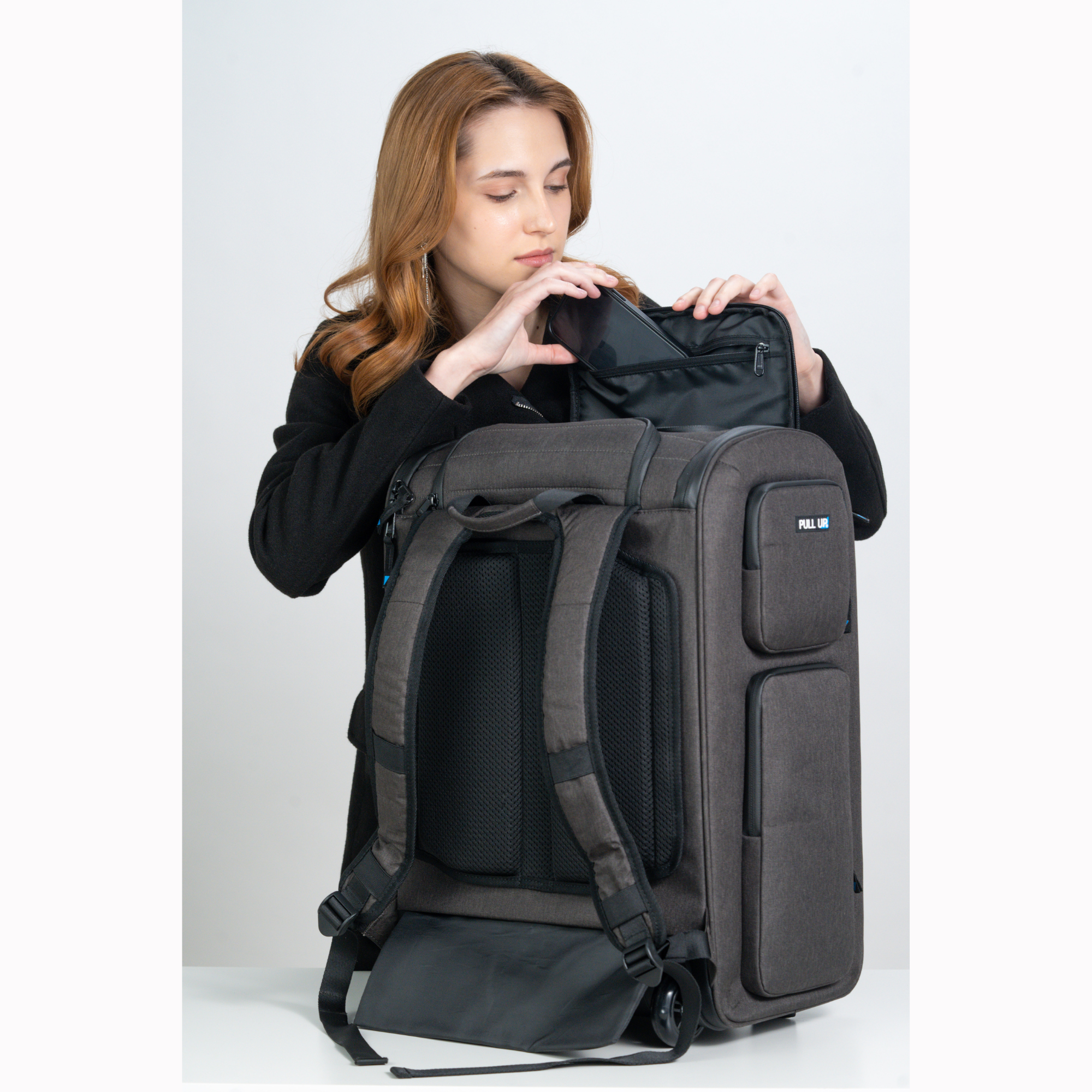 Rucsacul Pull Up se transforma rapid de la rucsac la troller, facand-ul un accesoriu de calatorie extrem de versatil.