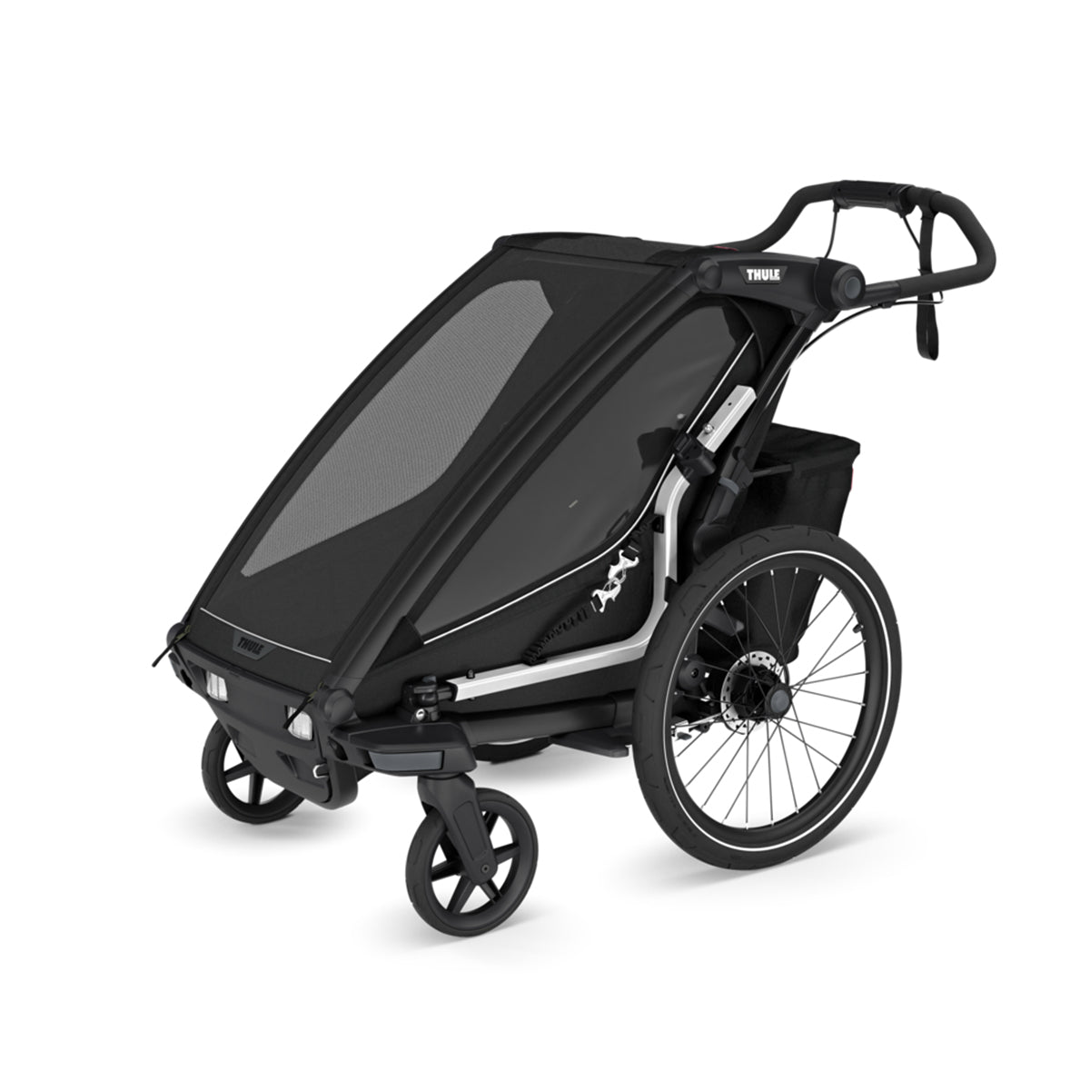 Thule Chariot Sport 2 poate fi transformat cu usurinta intr-un mare partener de antrenament cu un kit de jogging sau un kit de schi (vandute separat). Tranzitiile intre activitati sunt mai line si mai confortabile ca niciodată atat pentru parinte, cat si pentru copil.