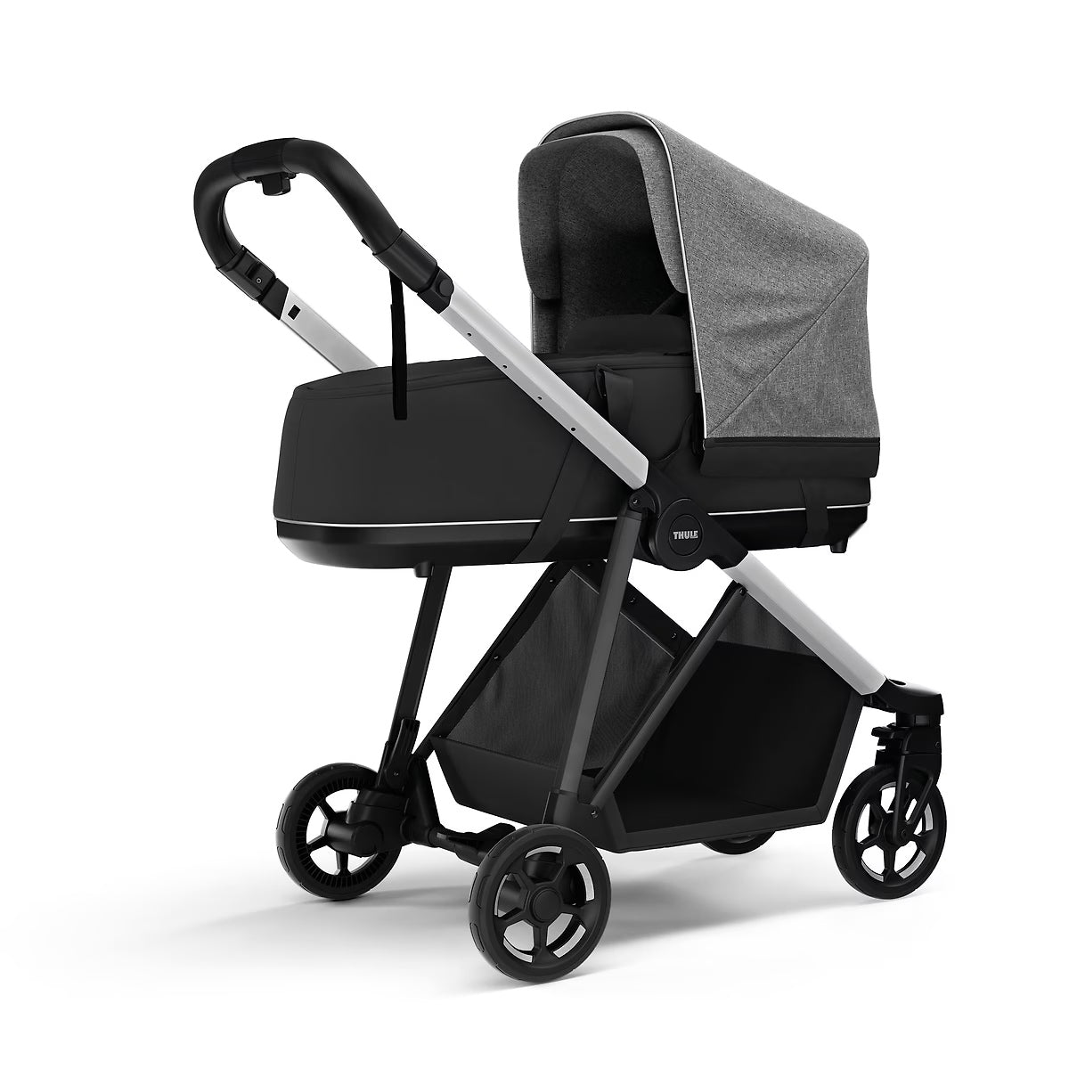 Un carucior mic nu inseamna mai putine posibilitati. Dimpotriva! Thule Shine este echipat cu un cos mare de cumparaturi, in care poti pune accesoriile necesare ingrijirii bebelusului tau.