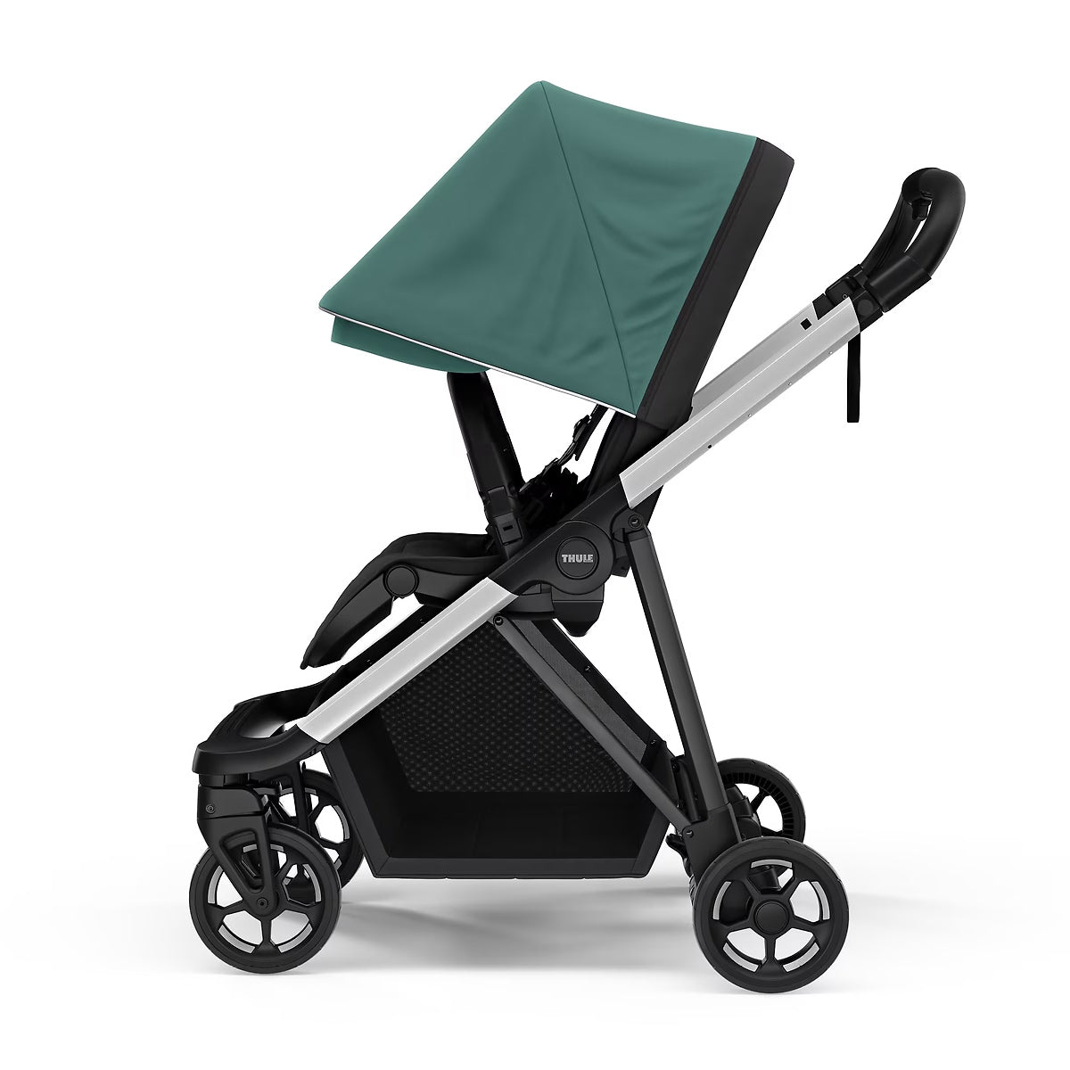 Un carucior mic nu inseamna mai putine posibilitati. Dimpotriva! Thule Shine este echipat cu un cos mare de cumparaturi, in care poti pune accesoriile necesare ingrijirii bebelusului tau.