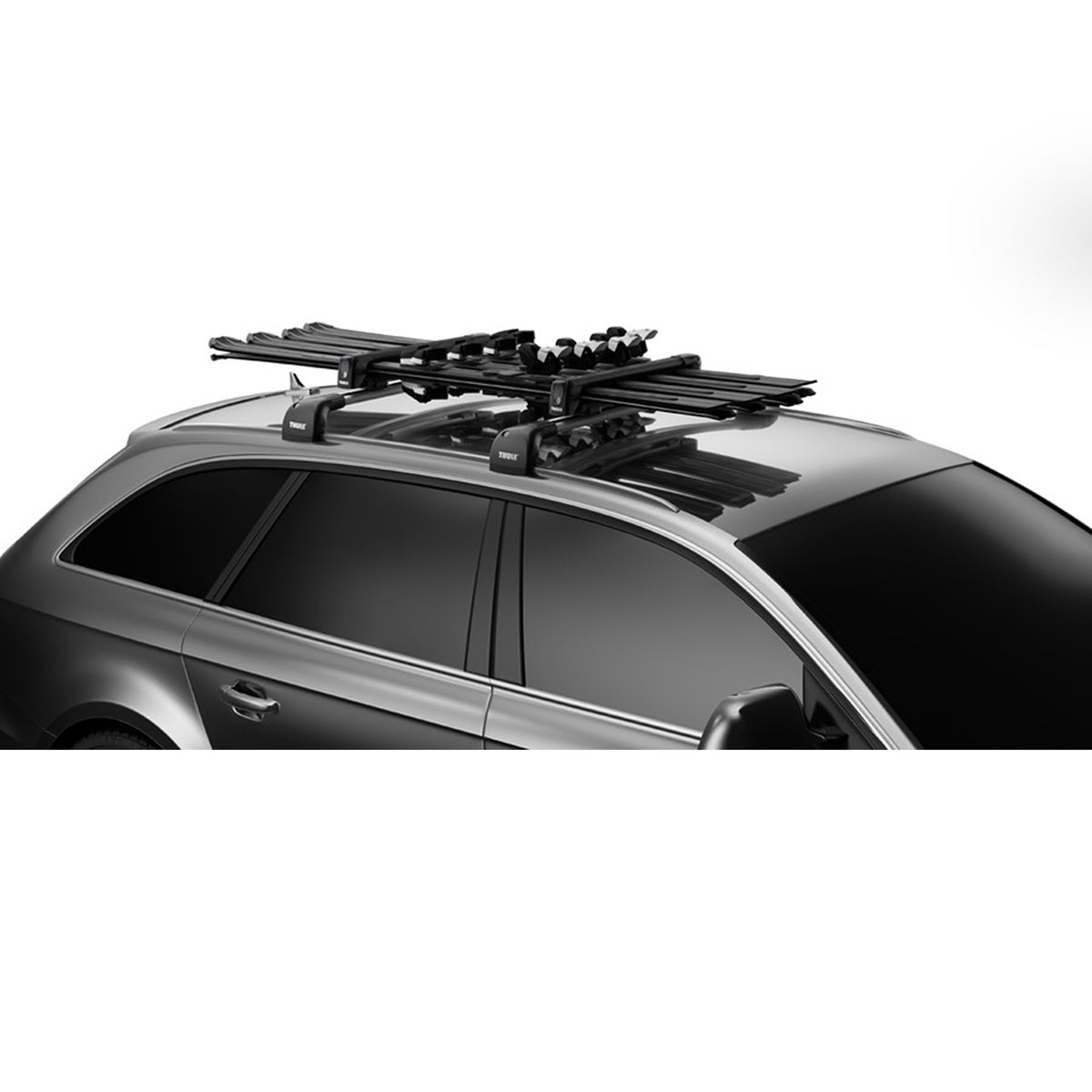 Securizeaza suportul de barele transversale, cat si schiurile in suport, cu ajutorul sistemului Thule One-Key (incuietorile fiind incluse).