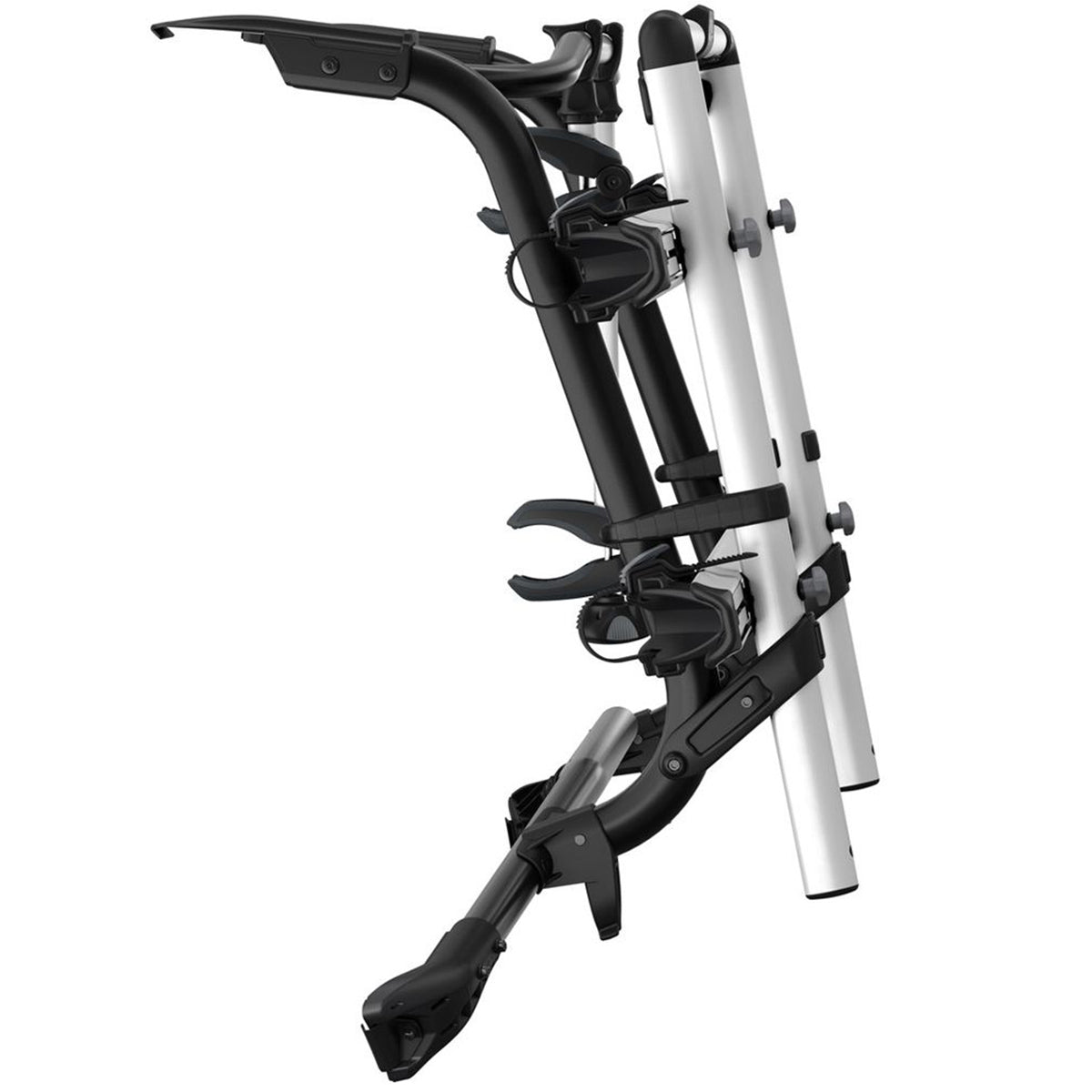 Platforma se poate plia vertical pe cadru si astfel puteti avea acces la portbagajul vehiculului atunci cand bicicletele nu sunt montate pe suport.