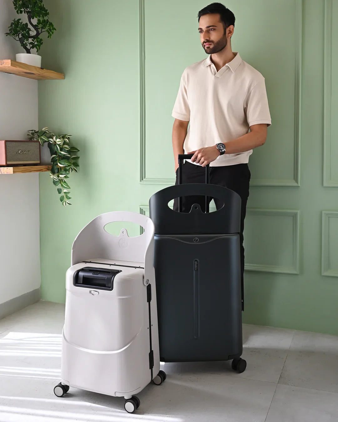 Trolerul MiaMily este un bagaj versatil care se transformă într-un carucior de transport pentru copii sau într-un scaun portabil pentru adulți, pentru ca tu sa te bucuri de călătorii relaxante și un loc de odihnă.